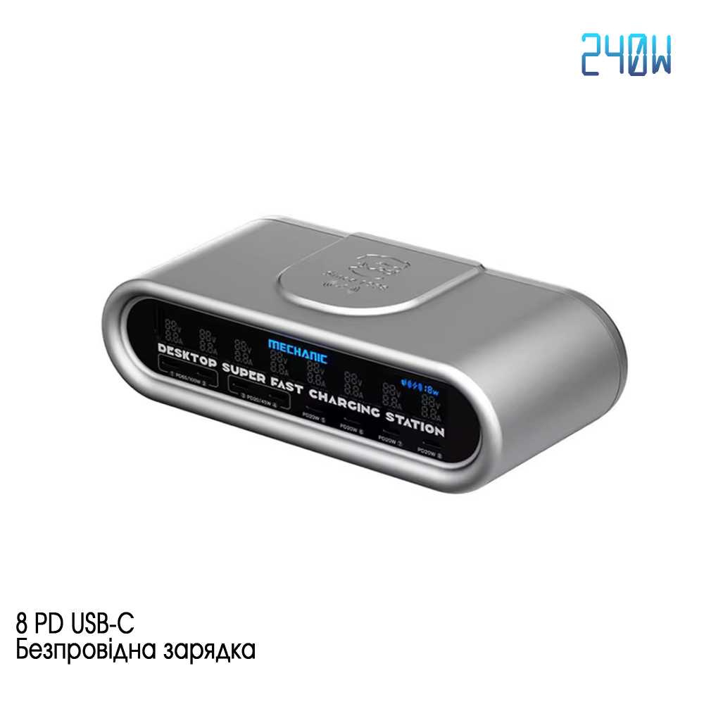 Зарядний пристрій Mechanic E-Power Max (8 PD USB-C + Бездротова зарядка) 240W, Уцінка