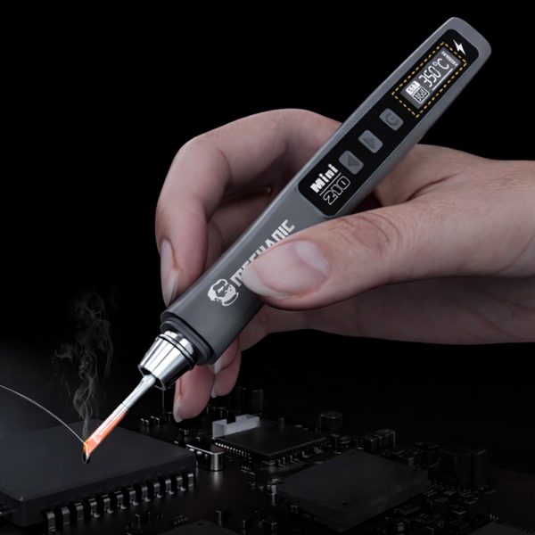 Портативний акумуляторний паяльник Mechanic Mini 210 (180-480°C / 40W / USB Type-C) — компактний та потужний інструмент нового покоління, розроблений для високоточної роботи з електронікою. Завдяки вбудованому нагрівальному сердечнику 210 та потужності 40 Вт він забезпечує швидкий розігрів, мінімальні втрати тепла та стабільну температуру, що контролюється інтелектуальним PID-алгоритмом військового класу. Ідеально підходить для ремонту плат, мікрокомпонентів та дрібних SMD-з’єднань, де важлива точність та акуратність.