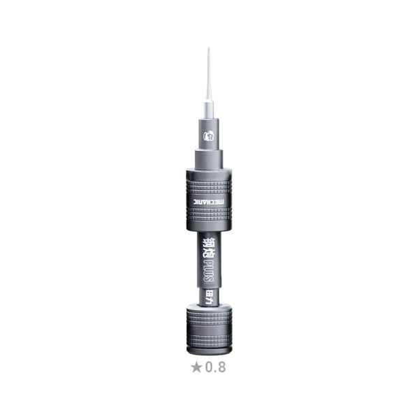 Викрутка Mechanic Steel Cannon Plus (☆0.8 / Pentalobe) — це професійний інструмент з інтегрованим динамометричним механізмом, створений для максимально безпечного обслуговування техніки Apple. Завдяки прецизійній насадці типу «зірка» 0.8 мм, вона є ідеальним рішенням для відкручування зовнішніх корпусних гвинтів iPhone. Модель поєднує в собі інноваційну систему контролю зусилля та преміальну ергономіку для щоденної роботи в сервісному центрі.